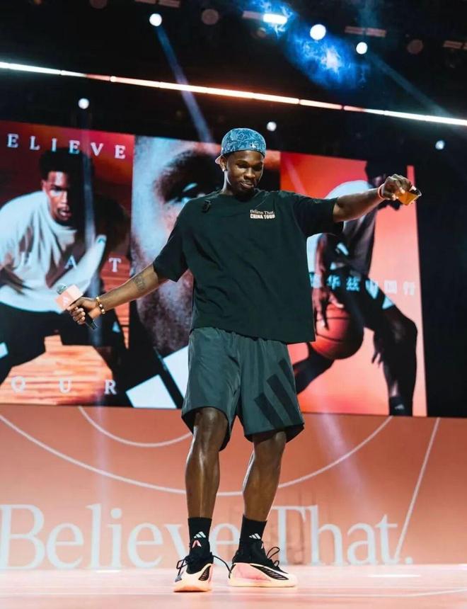 adidas则是今夏当之无愧的跨界联动大师。从哈登的灯光+豪车+音乐节式舞台,杰伦·威廉姆斯和Gali的「citywalk」,再到爱德华兹和顶流艺人王安宇的梦幻联动,有意把篮球和潮流文化拼接,完成了一次审美高度统一的生活方式输出。在他们的场景下,篮球本身似乎已不再是唯一焦点,而是进入更广文化场景的一块敲门砖;