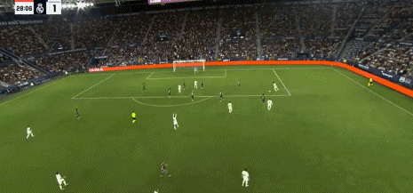 尽管主队莱万特开场阶段表现积极,多次制造威胁,但率先打破僵局的仍是皇马。第28分钟,居莱尔在禁区前沿断球,迅速分到右路。巴尔韦德不停球直塞,维尼修斯接球后冷静调整,用右脚外脚背打出一记弧线球,皮球直挂远角,门将瑞安毫无反应。