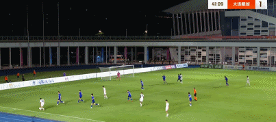第45+1分钟,肖嘉旗出击失误,黄铭打空门得手,上海嘉定汇龙1-1!