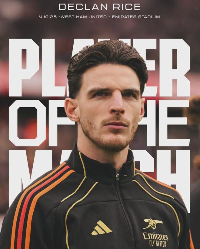 官方:赖斯被阿森纳官方票选为了全场比赛最佳球员。
