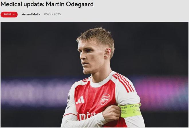 官方:阿森纳宣布厄德高在对西汉姆的比赛中左膝内侧副韧带受伤,他将退出本届挪威国家队,无缘对以色列和新西兰的比赛。