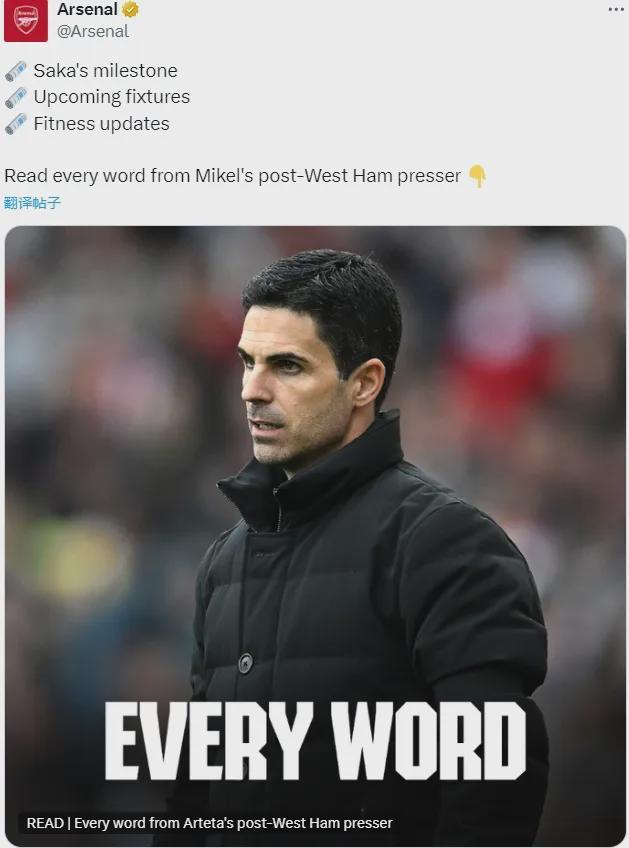 阿尔特塔出席了赛后新闻发布会,我们来看阿森纳主帅的发言。