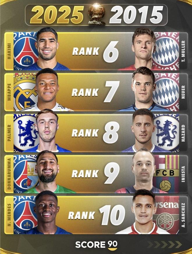 - 英超 | 不敢相信!回顾十年前:2025金球奖前十名真比2015年差这么多吗