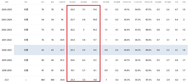 近三个赛季,特雷杨场均26+11两双进账,个人数据依然相当劲爆,然而带队成绩却直线下滑,老鹰已连续两个赛季未能杀进季后赛。正因近年来战绩糟糕,老鹰管理层对特雷杨的带队能力产生了动摇,不再和以往那般有着绝对信心,自然而然不会轻易向他提供全额顶薪合同。