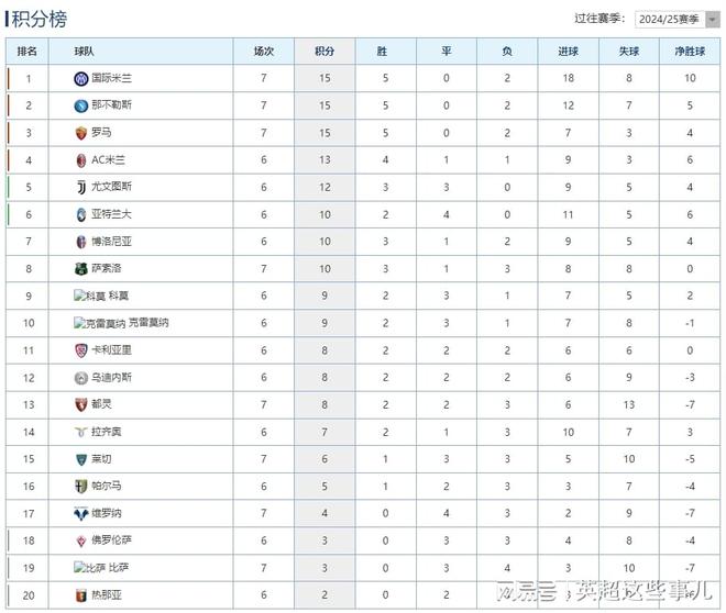 意甲最新积分榜:国米客场力克罗马登顶,那不勒斯爆冷输球!