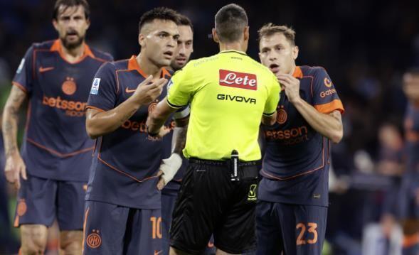 对手主动伸腿找点球,主裁判在最佳视野上先是没有支持这一点球,助理裁判却强势介入,没有要硬给,最终帮助那不勒斯在主场取得领先。对于国际米兰来说,这一幕多么似曾相识且熟悉。