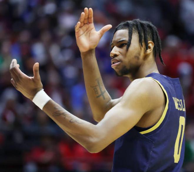 新秀赛季彻底报销,在马刺逐渐边缘化。时间来到2022年的选秀大会,韦斯利认为自己是必定能够被选中的。而这份信心除了来自于NCAA时期的出色发挥之外,他在联合试训的表现也是让人眼前一亮,身高达到了1.93米,臂展则有2.06米,加上不俗的爆发力和弹跳,他的选秀行情得到了上涨。最终,他成功被马刺队在首轮的第25顺位摘下,成为了这支老牌劲旅的一员。马刺队虽然近些年的战绩较为一般,但放眼整个NBA,除了热火队之外,没有几支球队的纪律性能够和他们相提并论,况且他们非常擅长培养年轻人。所以加盟马刺队,韦斯利也是喜出望外,可高兴还没有多久,巨大的麻烦就出现了。在22-23赛季,韦斯利逐渐进入到了球队的轮换阵容,场均可以得到5分、2.2个篮板和2.7次助攻,虽然有一些缺陷,但都是能够改正的,但在打了37场比赛之后,他就遭遇到了左膝十字韧带撕裂的重伤,赛季提前报销。