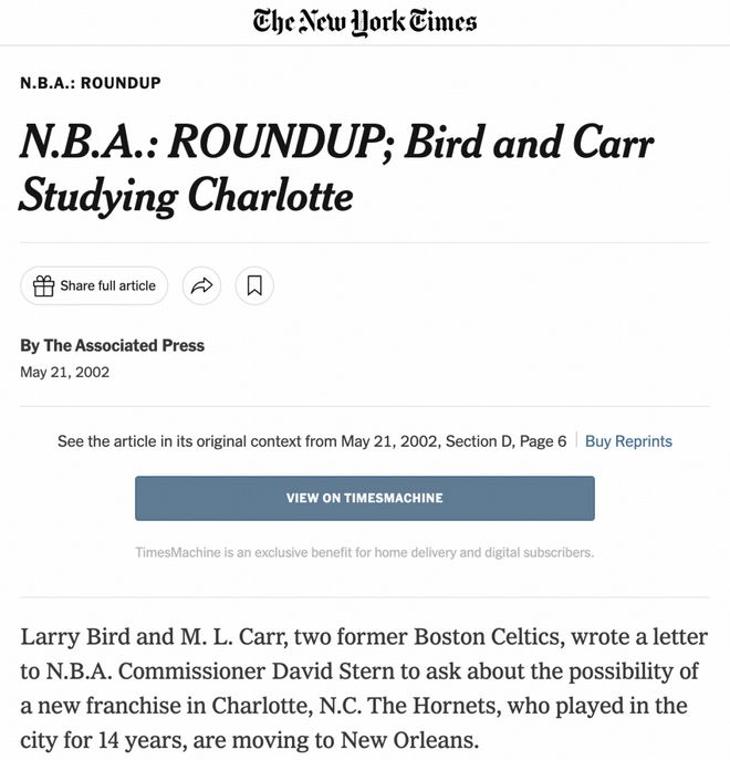 当年的报道,拉里-伯德最开始对买一个球队非常感兴趣