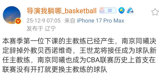 - CBA | 正式确定!CBA新赛季第一位下课主帅,冲冠球队更换教练